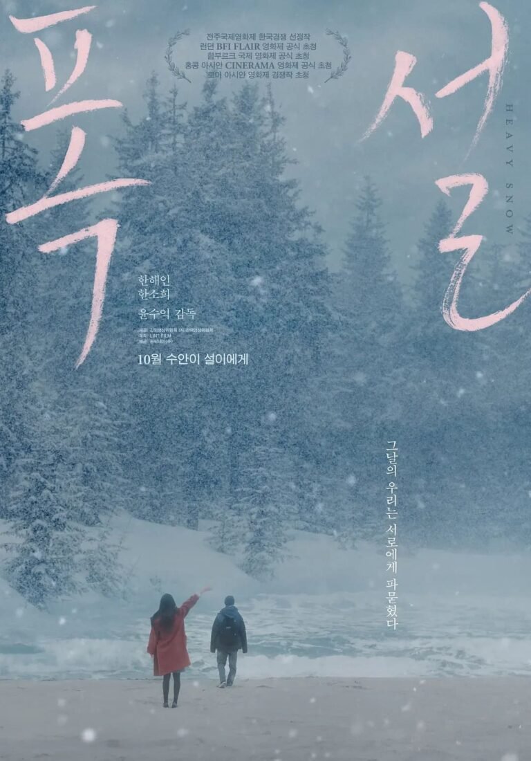 ชื่อภาพยนตร์: Heavy Snowปีที่ฉาย: 2023หมวดหมู่: โรแมนติก, ดราม่าผู้กำกับ: ยุน ซูอิก (Yun Su-ik)ความยาว: 77 นาทีวันเข้าฉาย: 31 ตุลาคม 2024 (ประเทศไทย)คะแนน IMDb: 6.0/10นักแสดง:ฮัน โซฮี (Han So-hee) รับบท ซอล (Seol)ฮัน แฮอิน (Han Hae-in) รับบท ซูอัน (Su-an)