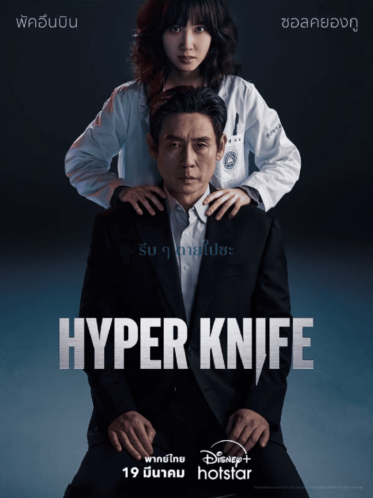 ชื่อหนัง: Hyper Knife (하이퍼나이프)ปีที่ฉาย: 2025หมวดหมู่: ดราม่า, อาชญากรรม, ระทึกขวัญ, การแพทย์ผู้กำกับ: คิม จอง-ฮยอนความยาว: 8 ตอนวันเข้าฉาย: 19 มีนาคม 2025คะแนน IMDb: ยังไม่มีข้อมูลนักแสดง:พัค อึน-บิน รับบท จอง เซ-อ๊กซอล คยอง-กู รับบท ชเว ด็อก-ฮียุน ชาน-ยอง รับบท ซอ ยอง-จูพัค บยอง-อึน รับบท ฮัน ฮยอน-โฮ